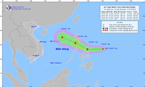Theo Trung tâm Dự báo Khí tượng Thủy văn Quốc gia, chiều 17/10, tâm vùng áp thấp nhiệt đới được xác định ở khoảng 12,6 độ vĩ Bắc – 127,2 độ kinh Đông, cách miền Trung Philippines khoảng 400km về phía Đông. Sức gió mạnh nhất gần tâm đạt cấp 6 (39–49km/giờ), giật cấp 8.