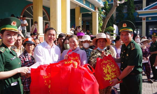 Bộ đội Biên phòng TPHCM và chính quyền địa phương tặng quà Tết cho nhân dân xã Bình Khánh