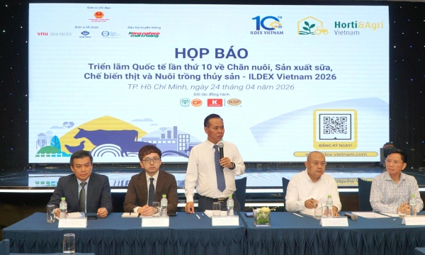 Với chủ đề Chăn nuôi sạch – Sản xuất xanh – Phát triển chuỗi giá trị bền vững, Triển lãm quốc tế về chăn nuôi, sữa, chế biến thịt và nuôi trồng thủy sản phản ánh rõ xu hướng chuyển đổi mạnh mẽ của ngành chăn nuôi theo hướng sản xuất có trách nhiệm với môi trường, thúc đẩy chuyển đổi số và xây dựng các chuỗi giá trị hiệu quả, bền vững. Đây là nhận định của các chuyên gia, nhà quản lý tại buổi ra mắt triển lãm quốc tế lần thứ 10 về chăn nuôi, sữa, chế biến thịt và nuôi trồng thủy sản -ILDEX Việt Nam 2026 tổ chức tại TPHCM ngày 24/4.