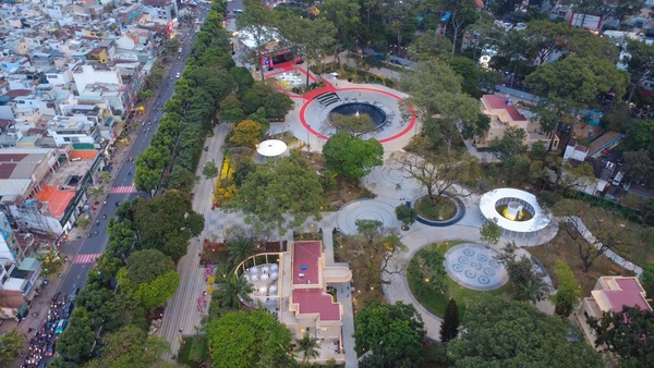 Toàn cảnh Công viên số 1 Lý Thái Tổ rộng 4,3ha giữa trung tâm TPHCM, nhìn từ trên cao.- Ảnh: Văn Phúc.