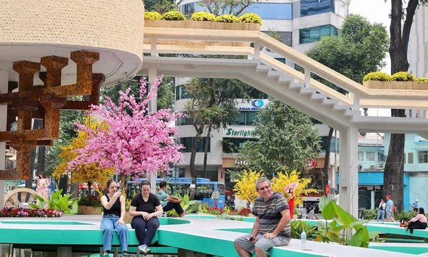 Từ Công viên số 1 Lý Thái Tổ – nơi từng là khoảng xanh quen thuộc tại bùng binh ngã sáu cộng hoà – nay trở thành điểm hẹn rộn ràng của các gia đình trẻ. Từ khu vực Nhà thi đấu Phan Đình Phùng – vốn là không gian thể thao – nay được tổ chức như một quảng trường xuân thu nhỏ. Góc Nam Kỳ Khởi Nghĩa – Lê Thánh Tôn, vốn được quây kín không gian trong dòng chảy đông đúc phương tiện qua lại, nay trở thành điểm nhấn nghệ thuật ánh sáng tô điểm cho đại lộ Lê Lợi rộn ràng với đường sách Xuân. Hồ Con Rùa – biểu tượng sinh hoạt của giới trẻ – thêm phần sống động với tiểu cảnh hiện đại. Tiểu đảo trước chợ Bến Thành – trái tim du lịch của thành phố – trở thành nơi du khách dừng chân, hòa mình vào không khí Tết Việt.