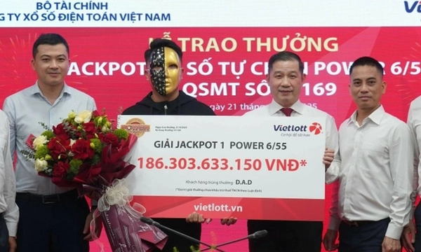 Ngày 21/4, Công ty Xổ số Điện toán Việt Nam (Vietlott) đã tiến hành trao giải độc đắc Jackpot 1 trị giá hơn 186 tỷ đồng cho một khách hàng là anh D.A.D.