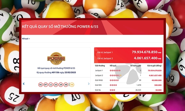 Công ty Xổ số Điện toán Việt Nam (Vietlott) cho biết, tại kỳ quay số mở thưởng thứ 1156 của loại hình Power 6/55 ngày 25/2/2025, giải Jackpot 1 đã chạm mốc 79,93 tỷ đồng. Tuy nhiên, vẫn chưa có người chơi nào may mắn sở hữu tấm vé trúng giải độc đắc này.