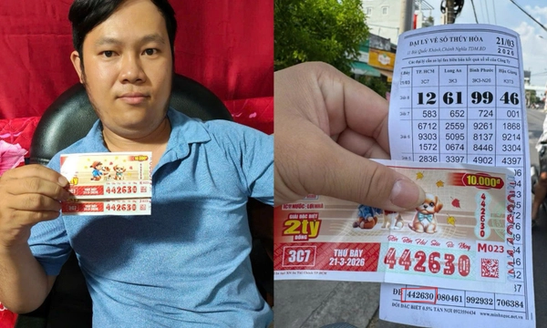 Đại lý vé số Thúy Hòa tại TPHCM (Bình Dương cũ) cho biết vừa đổi thưởng 3 tờ trúng giải đặc biệt cho hai khách hàng may mắn cùng địa phương. Cả hai sở hữu 3 tờ có dãy số 442630 của đài TPHCM, mở thưởng ngày 21/3, với tổng giá trị lên đến 6 tỷ đồng (chưa trừ thuế).