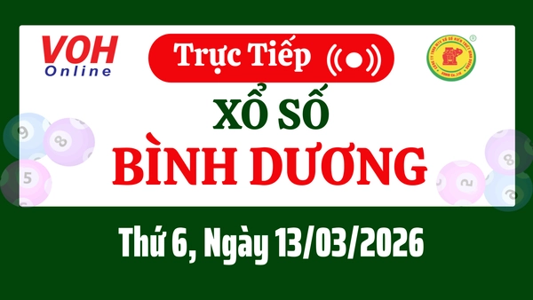 Xổ số Bình Dương hôm nay 13/3/2026 được cập nhật trực tiếp lúc 16h10 từ trường quay.
