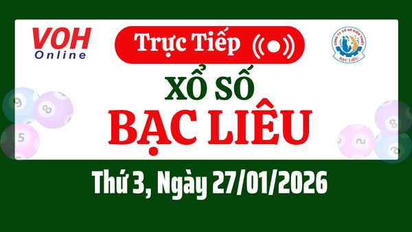 Xổ số Bạc Liêu hôm nay 27/1/2026 được cập nhật trực tiếp lúc 16h10 từ trường quay.