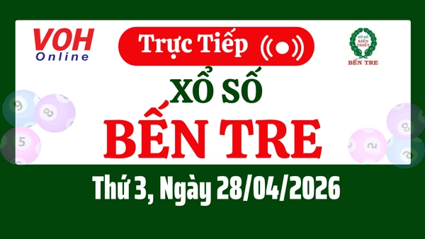 Xổ số Bến Tre hôm nay 28/4/2026 được cập nhật trực tiếp lúc 16h10 từ trường quay.