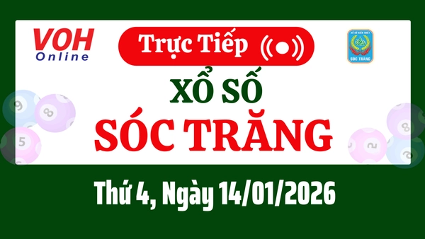 Xổ số Sóc Trăng hôm nay 14/1/2026 được cập nhật trực tiếp lúc 16h10 từ trường quay.
