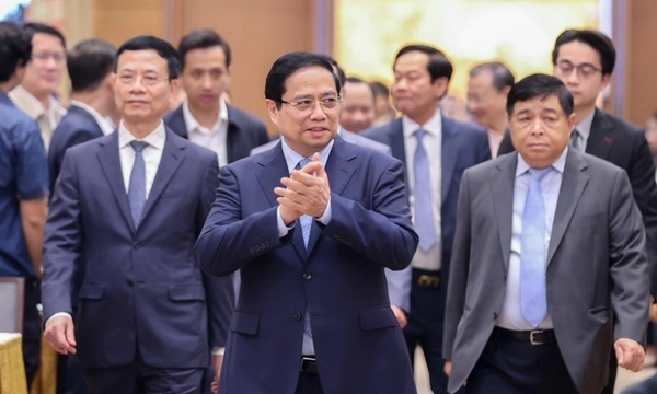 Nhấn mạnh quan điểm “kinh tế số là động lực, xã hội số là nền tảng, con người là trung tâm”, Thủ tướng cho biết Đảng, Nhà nước và Chính phủ thời gian qua đã ban hành nhiều chủ trương, đường lối, cơ chế, chính sách thúc đẩy phát triển kinh tế số, xã hội số. Đại hội Đảng lần thứ XIII xác định từng bước phát triển kinh tế số, xã hội số, nâng cao năng suất, chất lượng, hiệu quả và sức cạnh tranh của nền kinh tế.