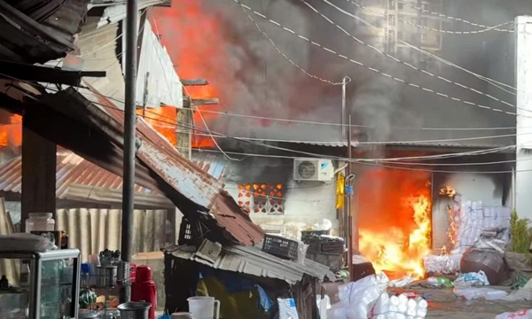 Khoảng 7h, đám cháy xuất phát từ căn nhà rộng khoảng 50 m², cách nút giao An Phú chừng 500 m. Dãy nhà vách gỗ, mái tôn, nằm ven kênh, cạnh cầu Giồng Ông Tố, khiến lửa bốc lên nhanh và dữ dội. Khói đen bao trùm khu vực chợ.